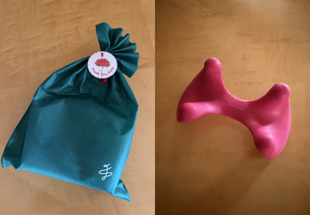 パパと3歳の子どもからのサプライズギフトは、欲しかったツボ押しマッサージ機。「お疲れさま」という家族の優しさが詰まったアイテムは、日々の生活で度々愛用しているそうです(たんしょこさん)