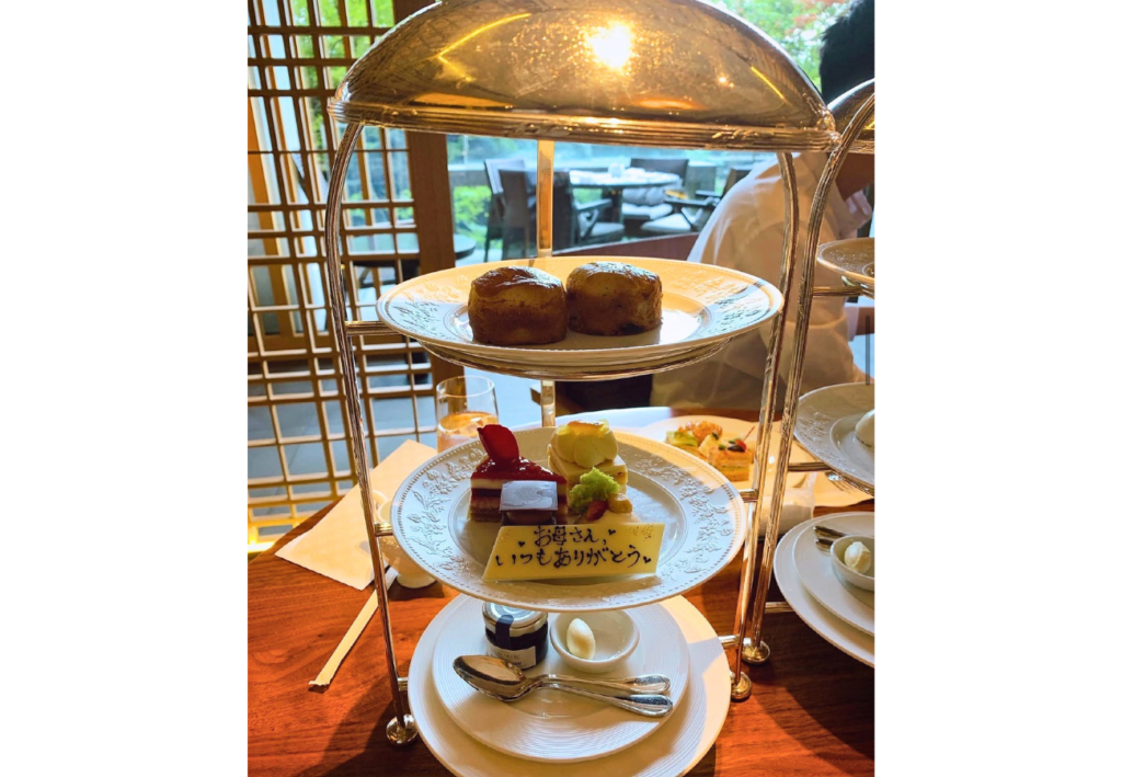 おばあちゃんへのサプライズに、ホテルのアフタヌーンティーを予約。素敵なティータイムを楽しんだ最後に、お孫さんからお花をプレゼント!非日常な空間でのサプライズに、おばあちゃんも思わず感動されたそうです。(kanakoさん)
