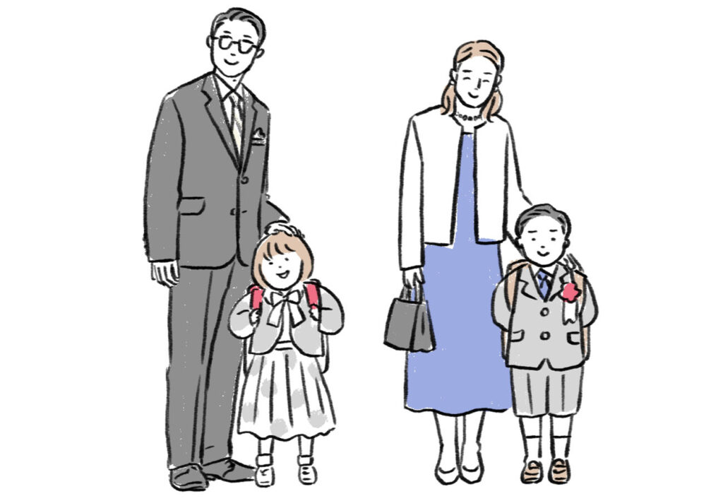入学式の服装は、親子ともに華やかでフォーマルな服装が基本になります。子どもはスーツやワンピースにランドセル、保護者は明るいカラーのスーツや上品なセットアップが定番です。