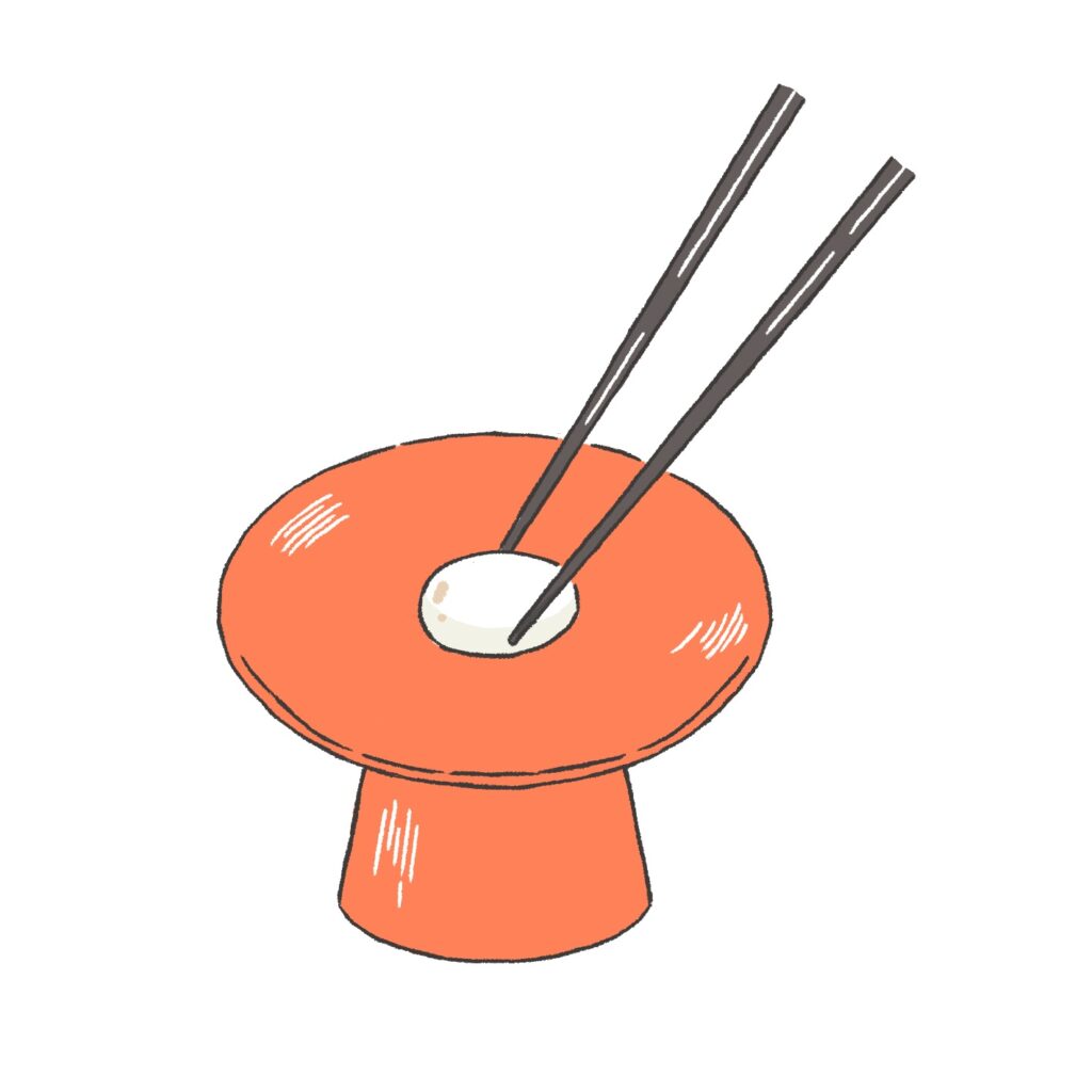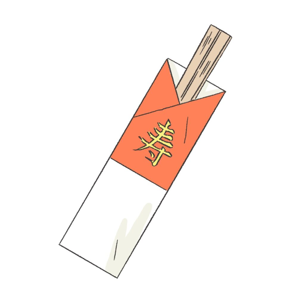 お食い初めでは、お正月や婚礼などの慶事で使われる「祝箸」を用意します。箸袋には「寿」や「鶴」といった縁起の良い文字や文様が描かれ、お祝いの席を華やかに彩ります。