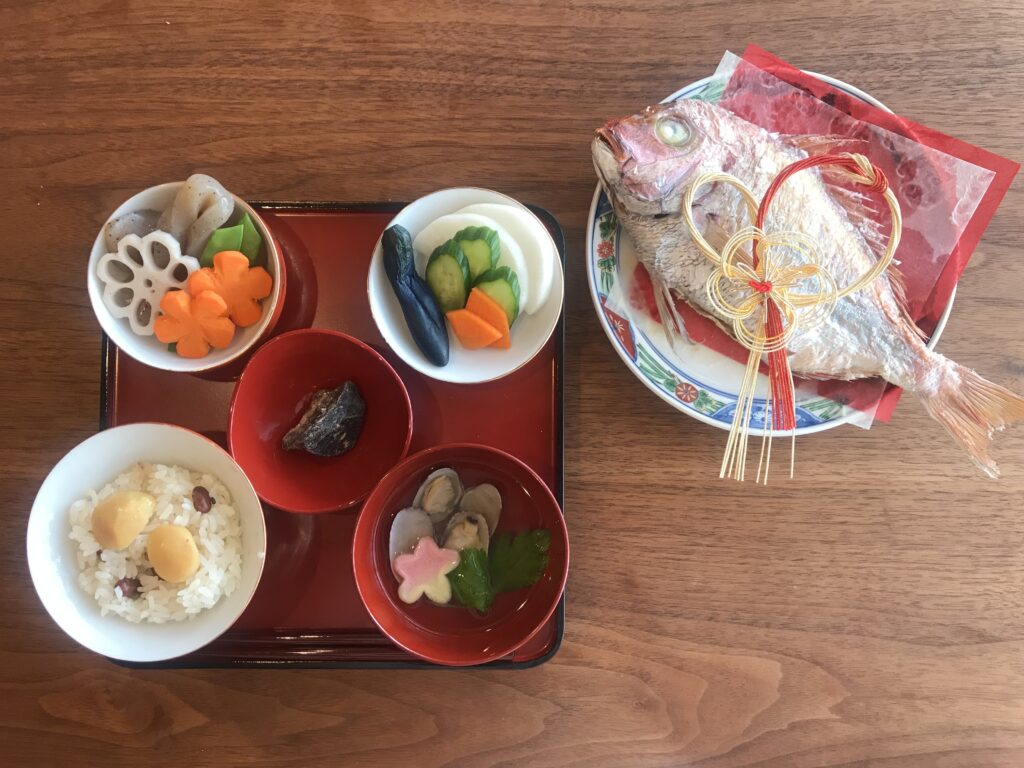 - 煮物:将来を見通しやすくなるレンコン、まっすぐ健やかに育ってほしいというたけのこなど、縁起の良い具材を使って成長を願います。