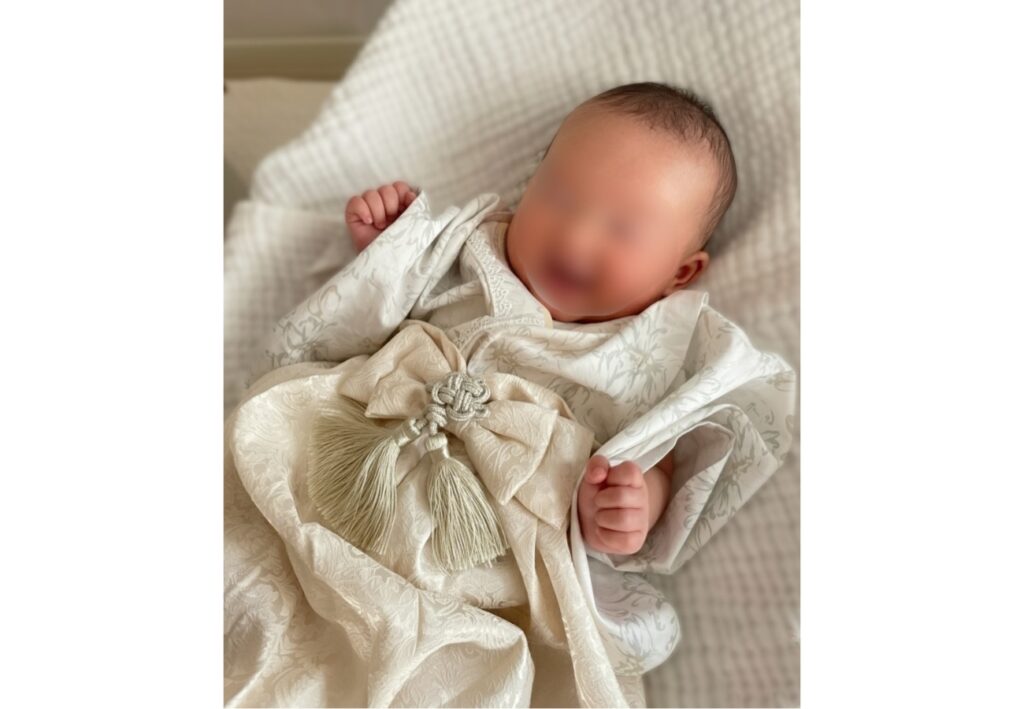「お食い初めは自宅でゆっくり。そのために用意したベビー袴は、胸元の大きなリボンが可愛くて一目惚れして即決しました。ネットショップで購入したのですが、3,000円台というプチプラ価格には見えないクオリティ。特別感を演出できたのでおすすめです」(@ osue129さん)