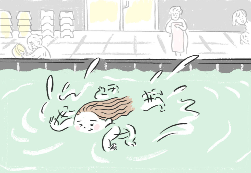 温泉や銭湯の基本マナーの1つです。湯船はプールではないので、泳いだり潜ったりしないようにしましょう。