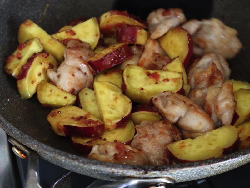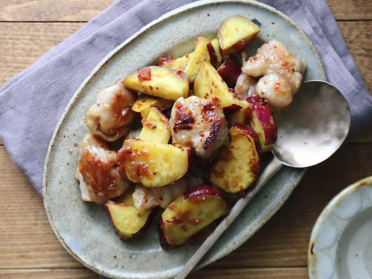 旬のさつまいもと鶏もも肉を粒マスタードで甘酸っぱく仕上げました。隠し味に梅干しを入れることで、秋バテした体にも嬉しい一皿に。