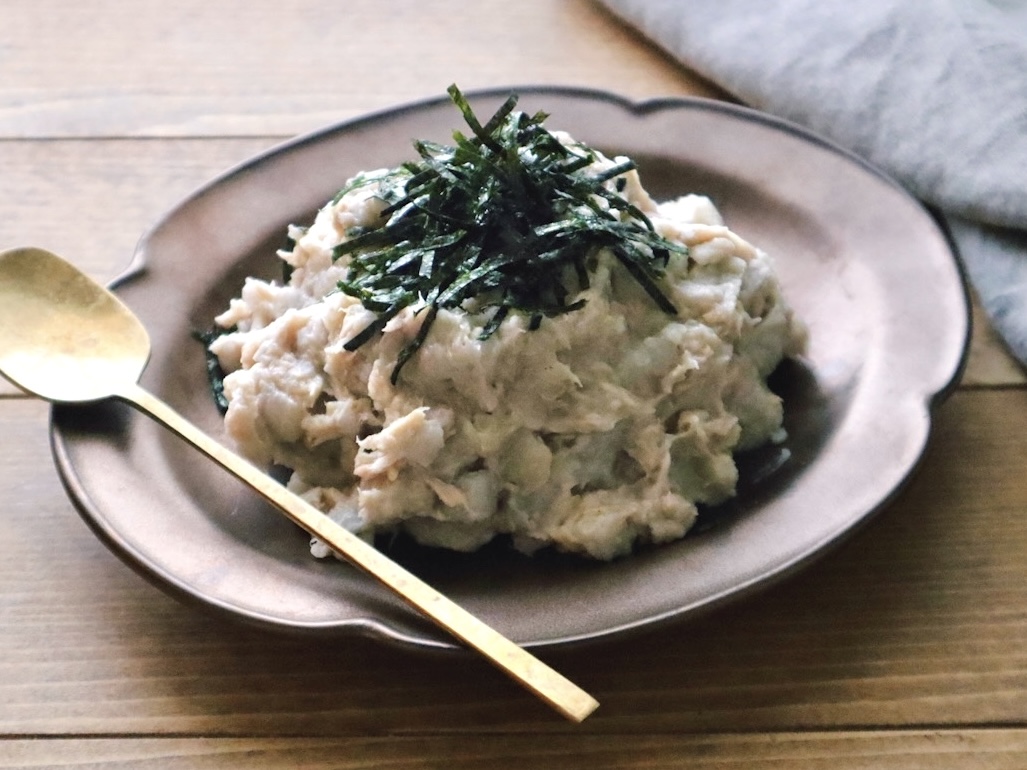 - ボウルに軽く水気の切ったツナ缶と【A】を混ぜ合わせ、つぶした里芋に③を加えてよく和える。