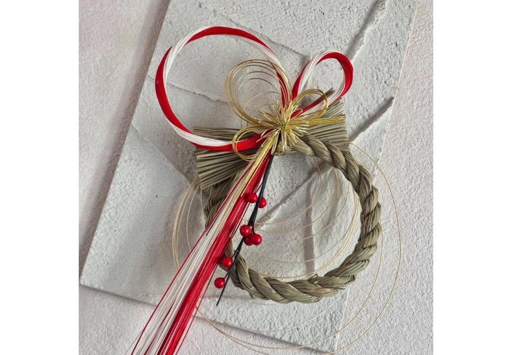 和の伝統的な素材と、メタリックな輝きを持つ洋風のタッセルを組み合わせたおしゃれなしめ縄です。(@uniikurasanさん)