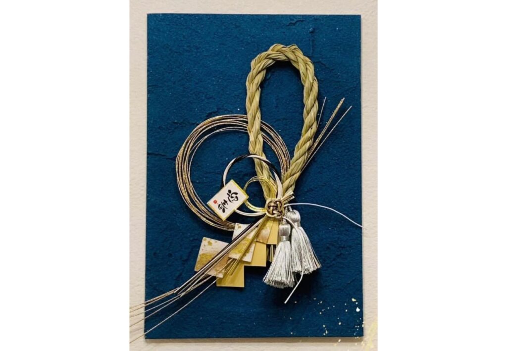 - 深いネイビーの背景色を使うことで、しめ縄の淡い草色やゴールドの輝きが際立ち、モダンな雰囲気になります。