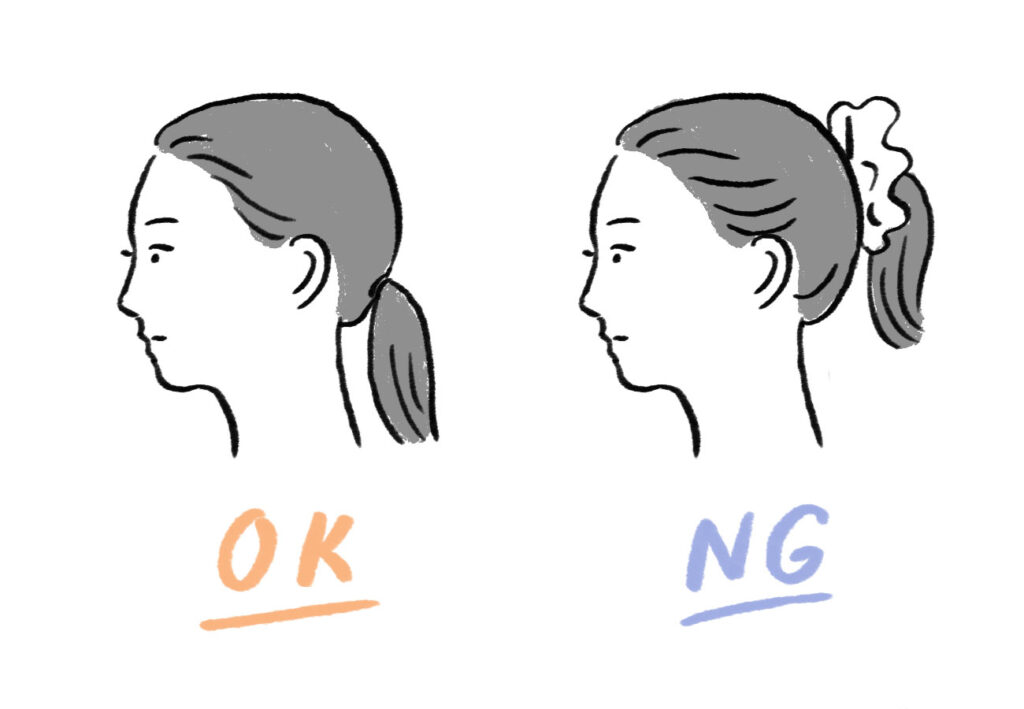 耳より高い位置で結ぶと華やかな印象を与えてしまうため、低い位置でまとめるのが良いでしょう。