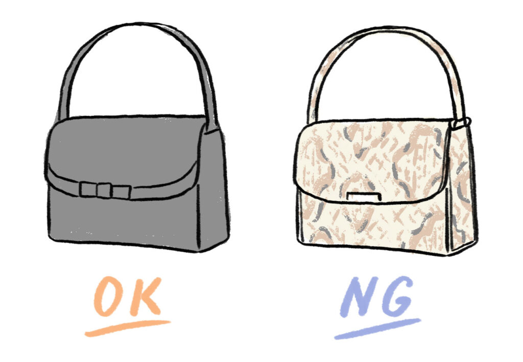 弔事の席であることを踏まえ、光沢のある素材や派手な飾り、露出の多いデザインは避けましょう。